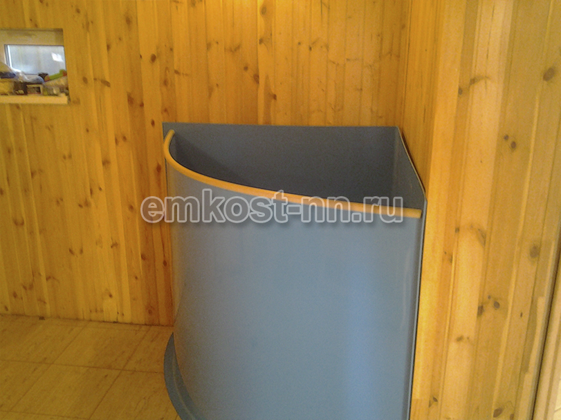 Угловая купель — идеальное решение для экономии пространства. Устанавливается в угол помещения, занимает минимум места при максимальном объёме воды. Изготавливаем из листового полипропилена, все швы сварные.