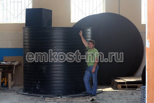 Производим крупногабаритные ёмкости объёмом от 15 до 50 м³ из листового полипропилена и полиэтилена. Применяются для хранения воды, стоков, технологических жидкостей. Толщина стенки от 15 до 40 мм, усиление рёбрами жёсткости.