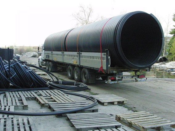 Спиралевидные полиэтиленовые трубы больших диаметров (от 300 до 3000 мм) для канализации, водоотведения, дренажа и санации трубопроводов. Технология навивки спирального профиля обеспечивает высокую кольцевую жёсткость при малом весе.